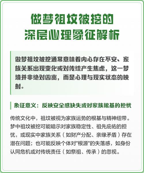 梦见墓基其实是一个蕴藏着丰富内涵的主题,它不仅引领我们探寻生命的终极意义,还鼓励我们拥抱变化与成长。在探索这些象征及其深层含义时,我们可以从中获得智慧,以更加开放的心态面对生活中的挑战。
