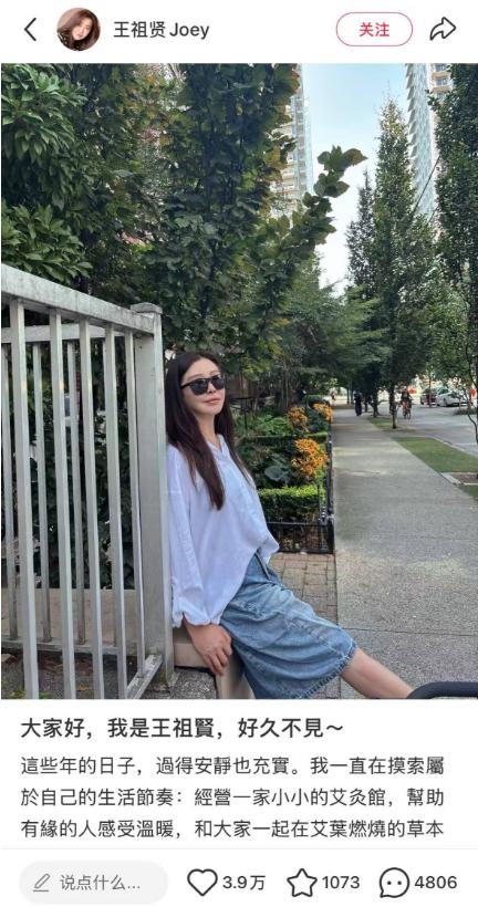 1月31日消息,演员王祖贤在小红书平台发文,称自己这些年来经营一家小小的艾灸馆,作为一个生活的分享者来到小红书,分享自己走过的街角、上班的小日常、或是情绪起伏时安顿自己的小方法。她表示:这些年的日子,